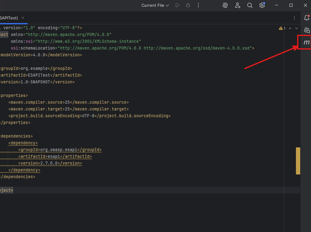 </project>- Click the Maven icon (usually in the top-right sidebar)