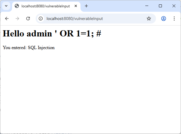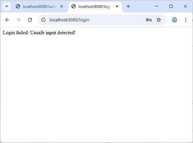 - Observe that unsafe inputs are rejected, demonstrating effective input validation.